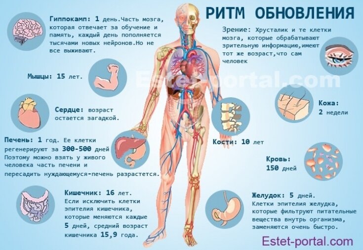 Не буду в даваться в описание процессов восстановления организма, дам первую попавшуюся ссылку, почитайте. Обратите внимание, что тело обновляется полностью на все 100% в течении некоторого срока...