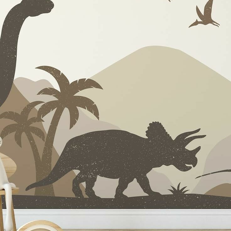 Очень хорошо смотрится 1 стена с обоями с динозаврами. Но не все стены! Постельное белье, всевозможные фигурки динозавров и мягкие игрушки динозавров тоже ок. В общем, если ваш ребенок увлекается этой темой.