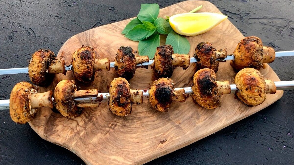 Итак, приступаем к приготовлению. Шампиньоны необходимо тщательно промыть, дать обсохнуть и в глубокой посуде перемешать со специями, чесноком и соусом. Даём настояться около получаса. Шампиньоны можно как нанизать на шампур, так и выложить на решётку. Жарить грибы нужно минут 10-15, пока они не покроются аппетитной корочкой. Главное, не передержать, иначе они потеряют всю свою сочность.