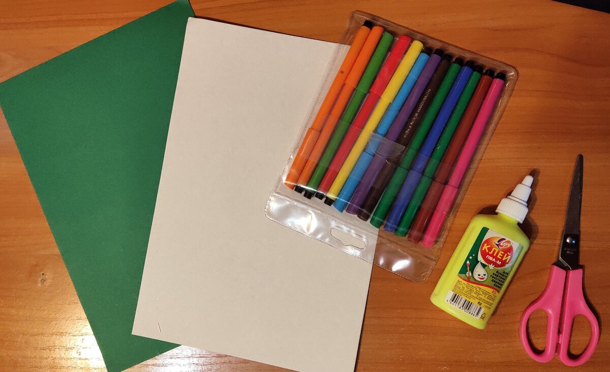 Затем берем белый картон и рисуем там голову, уши, морковь, и лапки для зайки.