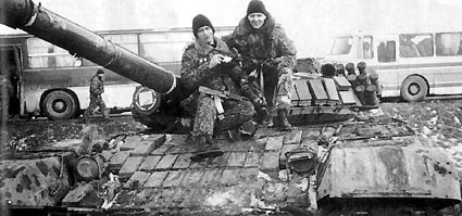 Следующим утром мы были уже у самого села. Командир отправился в штаб, получать задачи и налаживать взаимодействие, там он и пропал на весь день. Мы сидели в автобусах и ждали у моря погоды, время от времени к нам какие-то местные дагестанские начальники заходили и обнадеживали: мол, все в порядке, ребята, посидите и уедете, мы договоримся — крови не будет. Из федеральных начальников, что наших, что из министерства обороны, что из МВД, никого нет. Снабжение тоже не самое лучшее: нам еще хоть воду подвозили, а другим — нет, так и делили одну бочку на всех соседей. На вторые сутки стояния сообразили мы, что без драки не обойтись, и, надо сказать, об этом нисколько не жалели. Настроение у нас было еще вполне боевое. Послали мы группу ребят полазить вокруг села. Так и другие спецподразделения поступали: сами, без всяких приказов свыше разведку вели. И получилось, что, по нашим данным, огневых точек у противника в четыре раза больше, чем по штабным. Село действительно очень сильно укреплено было, да и подкрепления к дудаевцам постоянно подходили. Мы их сами видели, только стрелять не могли — приказа не было, переговоры продолжались. Только на третьи сутки сидения нам и соседям были поставлены задачи по штурму села.