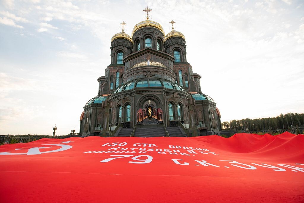 Участники ХIII Международного военно-музыкального фестиваля «Спасская башня» курсанты Рязанского гвардейского высшего воздушно-десантного командного училища им. генерала армии В. Маргелова развернули Знамя Победы площадью 375 м².