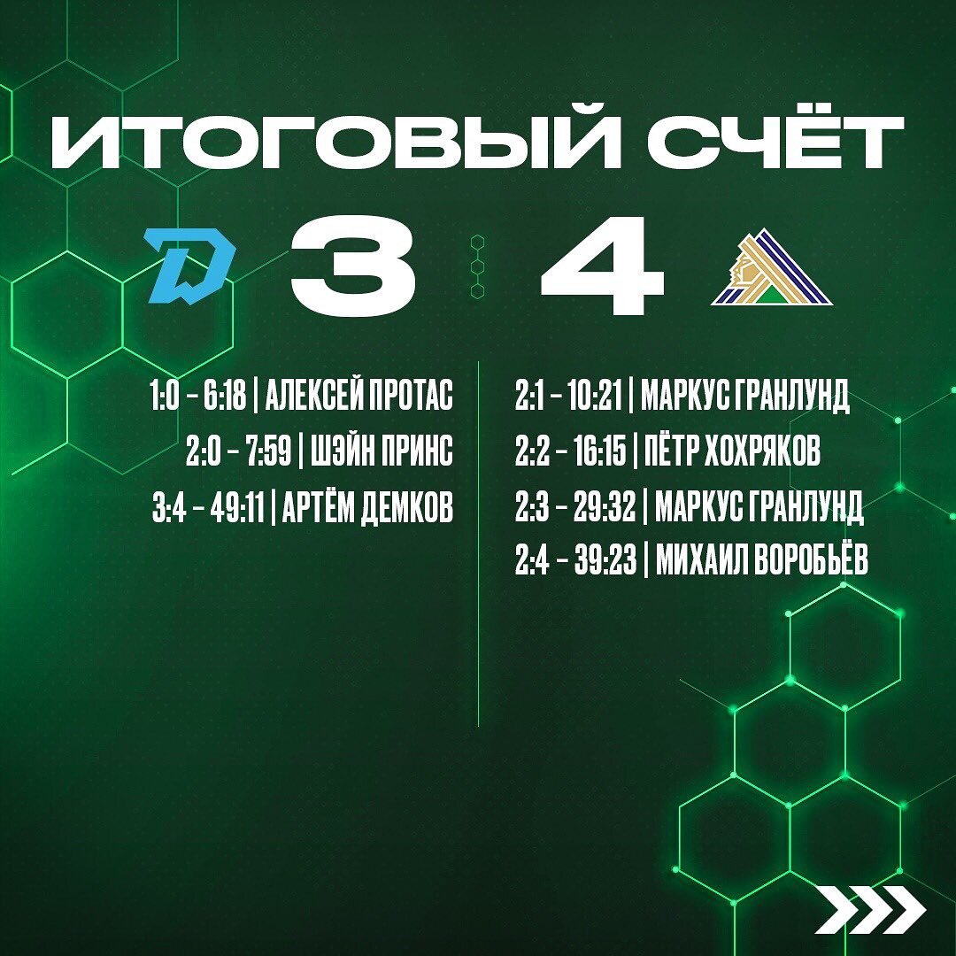 Динамо» (Минск) – «Салават Юлаев» (Уфа)3:4 (2:2, 0:2, 1:0).