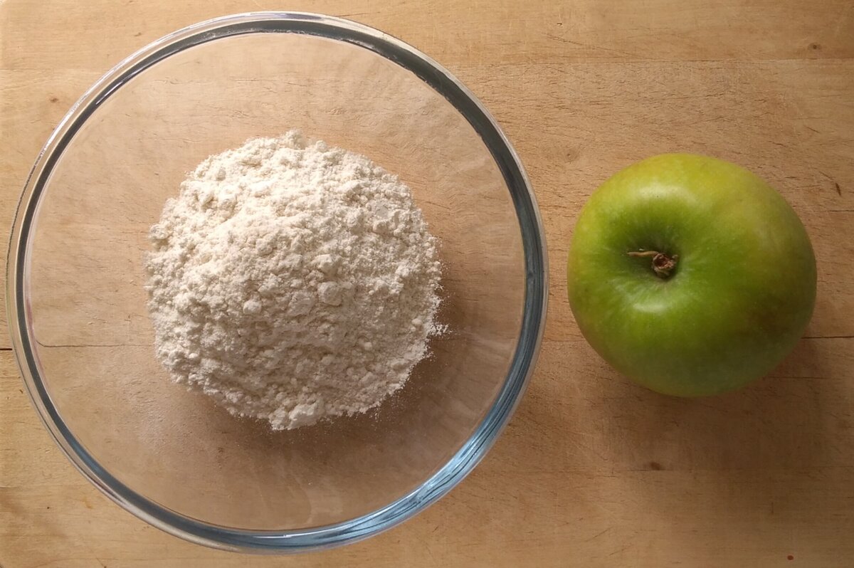 - Яблоко очистить от шкурки, вырезать серединку, нарезать мелкими кубиками или натереть на мелкой терке.