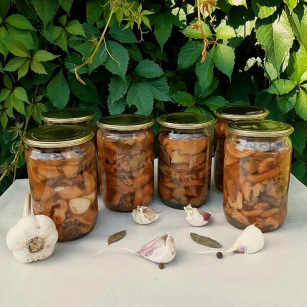 В случае, если грибы со специями укладывают в стеклянную банку, их просто заливают солевым раствором из расчёта 20-30 грамм соли на 1 литр воды, и закрывают крышкой.
