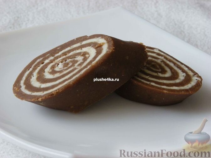 5 порций по 740 ККал 1 час 10 мин (ваши 30 мин) plushe4ka 29.06.14 44 руб. за порцию Рулет "Баунти" - это очень простой в приготовлении рулет без выпечки, напоминающий по вкусу одноимённый батончик. Рекомендую попробовать. Продукты (на 5 порций) Для теста : Для крема : Пошаговый фото рецептРулет "Баунти" (без выпечки) Печенье измельчить при помощи блендера или мясорубки в мелкую крошку. Добавить к печенью порошок какао. Перемешать. Полстакана сахара растворить в половине стакана кипятка. Остудить. Полученный сироп влить в сухую смесь. Замесить гладкое "тесто". Приготовить крем. Для этого размягчённое до комнатной температуры сливочное масло соединить с сахарной пудрой и кокосовой стружкой. Хорошо перемешать до однородности. Тесто из печенья раскатать на пищевой плёнке до желаемой толщины. Чем тоньше будет раскатанный корж, тем больше получится витков на срезе рулета. Я раскатала пласт толщиной примерно 3 мм. Пласт покрыть масляным кремом, равномерно распределяя его п