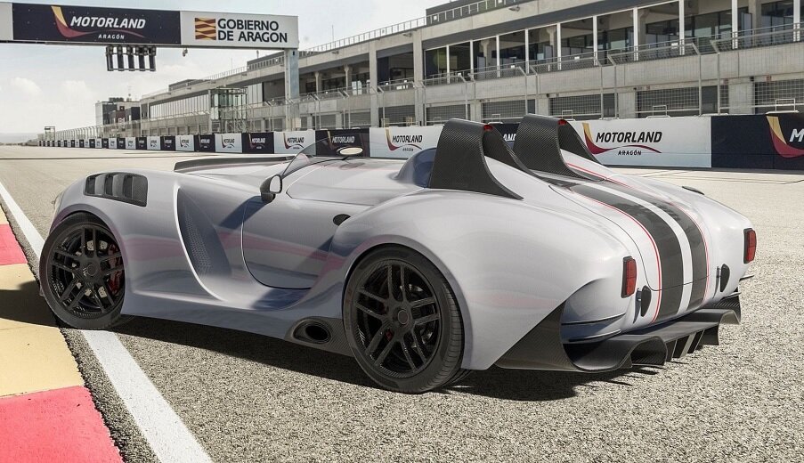 Бензиновый двигатель V8 5.2 от компании Ford мощностью 770 Л.С будет приводить в движение заднюю ось. Переднюю же будут вращать два электромотора мощностью по 178 Л.С. каждый. Общая же мощность авто обещает превысить 1125 лошадиных сил. Родстер планирует оснастить шестипоршневыми тормозами Wilwood на передней оси и регулируемой подвеской Ohlins. Кузов выполнен полностью из углепластика. В случае успеха продавать машину хотят за полмиллиона долларов.