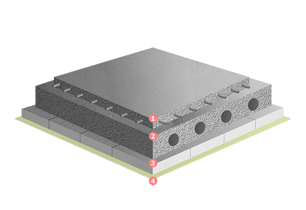 - Сверху заливается слой стяжки, толщина которого не должна быть меньше 2-х сантиметров.