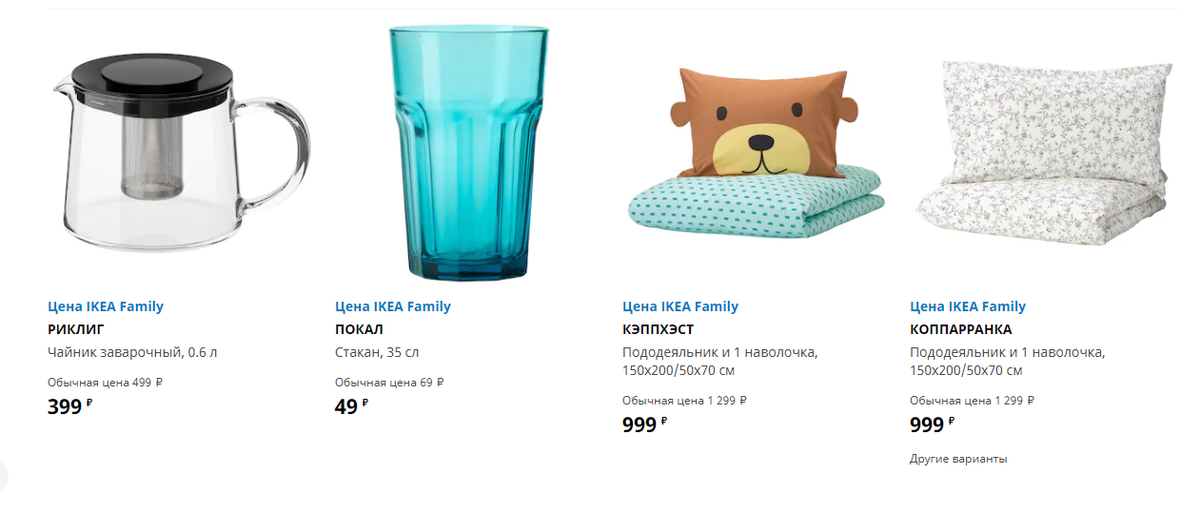 В глаза сразу бросился стакан, который, насколько я помню, и без того всегда продавался по низкой цене - для чего он в этой подборке я не понимаю. Можно сэкономить на чайнике или, например, на комплектах из пододеяльника и наволочки. Изначальная цена всегда указывается, что посчитать выгоду не трудно.