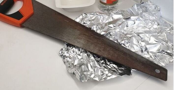 Забыли в траве пилу, спустя месяц ее наши, а она уже покрыта ржавчиной? Не беда, вы можете быстро и без вреда для природы очистить ее в домашних условиях. Для этого Вам пригодится уксус и фольга.