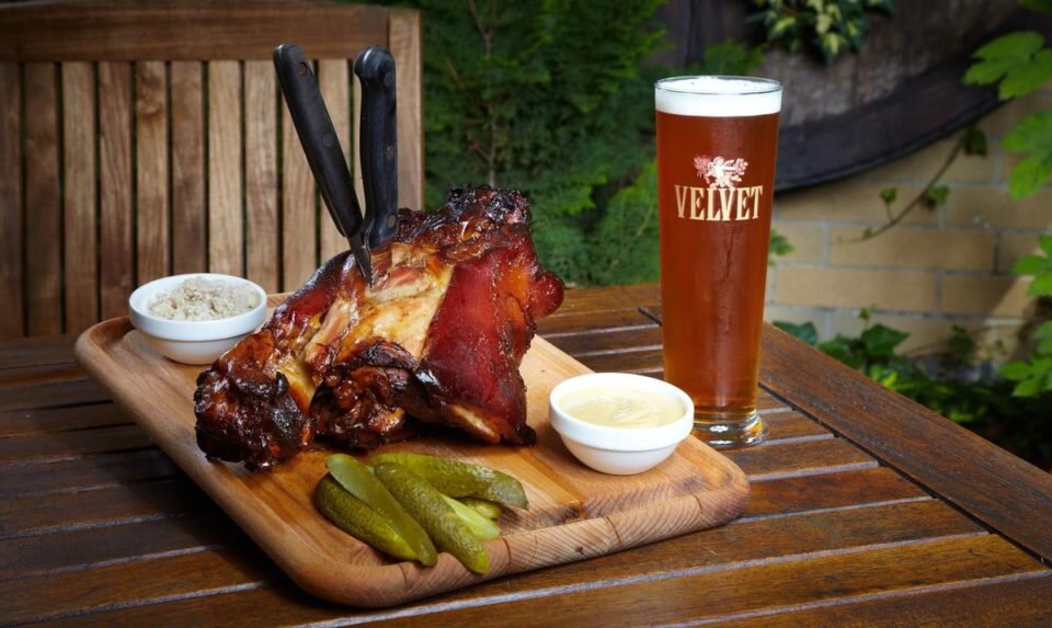 Местный деликатес — вепро-кнедло-зело. Предварительно обжаренные кусочки: лопатки или корейки, запекаются на гриле.