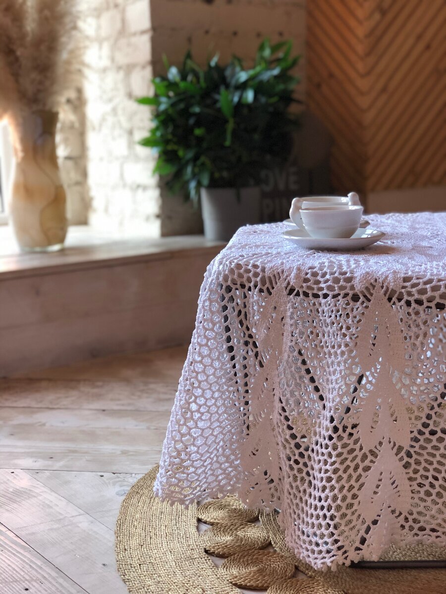 Вязаные скатерти бывают изготовлены из различных материалов. #нитидома Чаще всего их делают из: