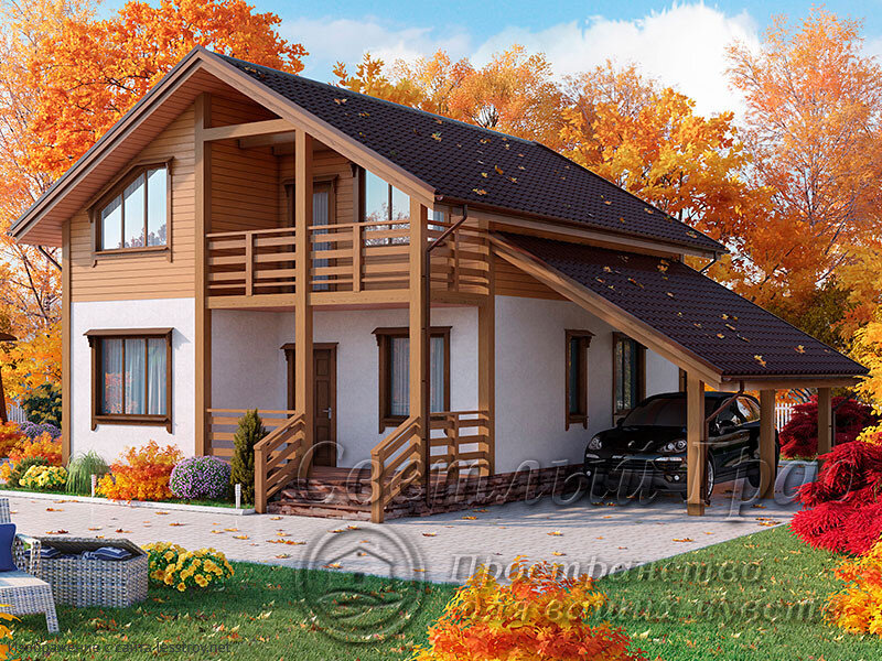 Общая площадь дома 162 м2. В качестве древесины используется сосна.
