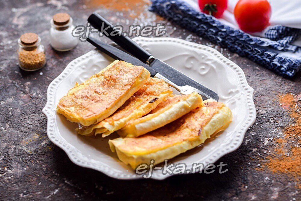Блюдо подходит как закуска к фильму, а также как простой и вкусный завтрак. Ингредиенты: лаваш тонкий – 2 шт.; яйца куриные – 2 шт.; сыр (твердый сорт) – 150 г; масло сливочное – 1 ст.л.; соль и перец. Лаваш нарезать прямоугольниками. На край выложить кусочки тонко нарезанного сыра, скрутить лаваш в небольшой рулетик. Яйца взбить, смешать с солью и перцем. Полученные рулетики с сыром обмакнуть в смесь из яиц, обжарить с двух сторон (с каждой стороны по 1 мин.) на сливочном масле.