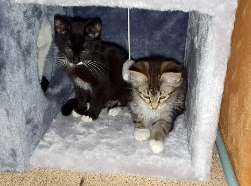 Ночью малышня устраивает очень сильно активные забеги. Могут и по людям проскакать только так. 😁 Так что всё хорошо у них. Нормальная довольная сытая жизнь двух маленьких котомальчишек.