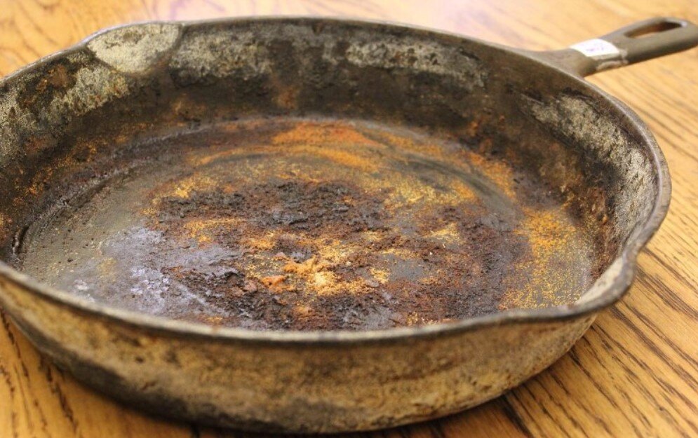 - Прокаливание на костре. Да, этот диковинный способ со времен Союза мы пробовали с мамой. В итоге у нас просто пополам треснула сковородка. Оказывается способ работал только для чугунных сковородок совдеповского производства. Сейчас чугун уже не того качества.