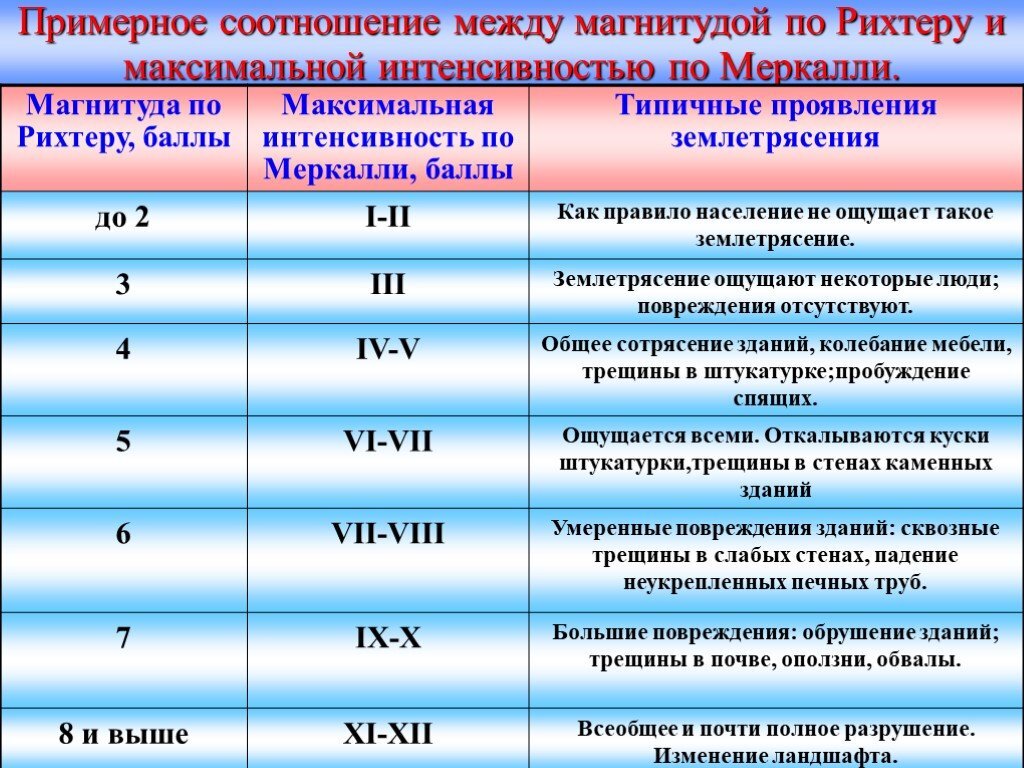 Под магнитудой землетрясения понимают условную величину, характеризующую общую энергию колебаний, вызванных землетрясением. Магнитуда позволяет сравнивать землетрясения по энергии, выделяемой в их очагах. Магнитуда землетрясения пропорциональна логарифму энергии колебаний, вызванных землетрясением: увеличение магнитуды на единицу соответствует увеличению энергии колебаний в 100 раз. Магнитуду