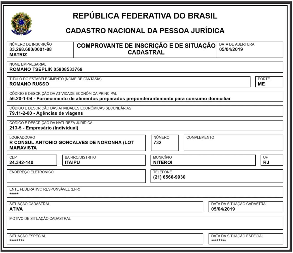 6. Теперь вы - юрлицо. Но не расслабляйтесь. Для каждой профессии есть определенные сертификаты, которые нужно получать отдельно. К примеру повара должны сдать экзамен ANVISA... Проверяйте в интернете, нужны ли вам дополнительные документы. Со временем я буду добавлять информацию по этому поводу на сайт.