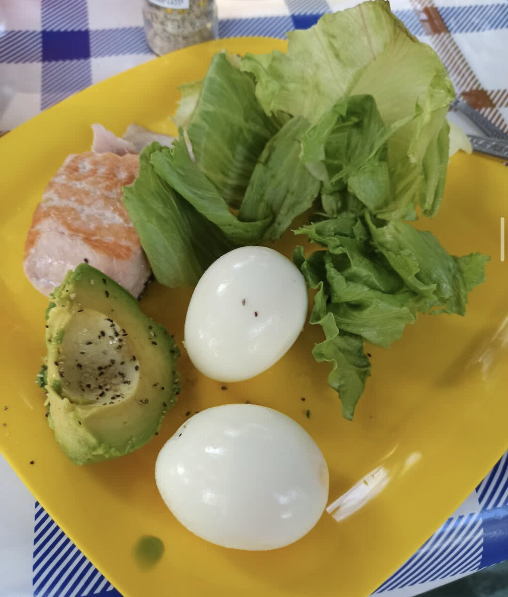 Наш отдых продолжается и жизнь в кемпингах вносит свои коррективы в питание и приготовление блюд. Здесь можно готовить вкусняшки и правильные блюда, но конечно ты ограничен в специях, крупе, муке, твороге или часто яйцах - все это можно купить или взять с собой. Но еще появляется такая вещь как ограничения в пространстве... Ты должен взять с собой не только продукты, но и одежду на все случаи жизни - холод, жара, дождь, медикаменты основные, столы, лежачки, стульчики, минимальный набор запчастей для машины, и еще главная вещь это велосипеды. Во-первых, спорт, что полезно, а не постоянно лежать и во-вторых, средство передвижения и доезда до ближайших магазинов и также вариант передвижения по кемпингу (если он большой). Конечно, Вы скажите, что мы живем в современном мире и все можно купить... Я не спорю, но часто бывает что кемпинг от города в 3-5 ти км и на себе многое не принесешь. Поэтому сегодня вообще простой и быстрый завтрак - яйца вареные, рыба, салат и авокадо. Приятног