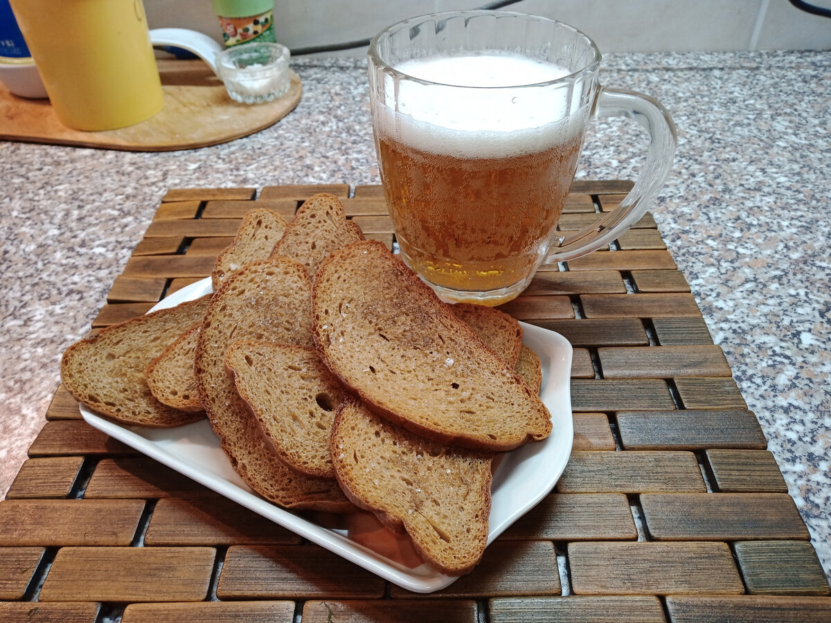 С ценами в магазинах творится какая-то хрень - такие "языки" из простого черного хлеба стоят около 1$ за упаковку, в которой их, наверное, штук шесть! Короче, решил я разнообразить свое меню закусок, и сам сварганил гренки с чесноком.