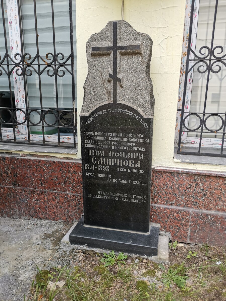 У входа находится захоронение рода Смирновых. Пётр Арсеньевич являлся "водочным королём" и благотворителем, прародителем торговой марки Smirnoff, почетным гражданином Москвы.