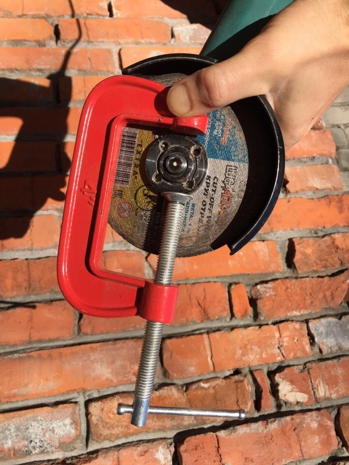 Необычный способ, которым я освобождал прикипевший диск болгарки при помощи струбцины.
