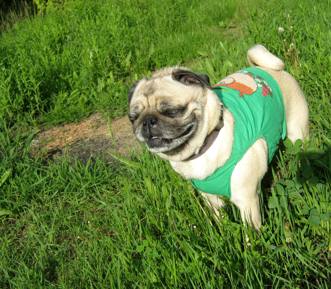 И вот недавно, буквально пару дней назад, я к своему изумлению) опять услышала этот же вопрос). Прям соскучилась за 6 прошедших лет. Парень с девушкой лет по 16 проходили мимо, и обронили: «О, мопс, а он у вас говорит?».