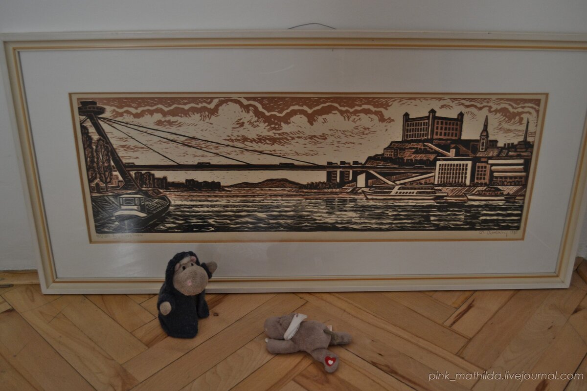Но потом, разглядывая эти фото спустя годы, я поняла, что эта картина была подарком от соседей Танечки при её переезде из Братиславы в Прагу. И здесь написаны их добрые пожелания - счастья, здоровья, и чтобы в Праге пилась не вода, а пиво.