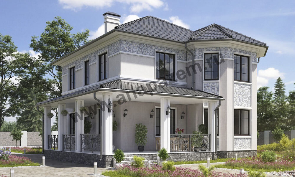 Строительство дома в европейском стиле выбирают люди с разным достатком. Использование натурального материала, такого как камень, в облицовке цокольного этажа, придает дому солидности. Оконные и дверные проемы могут быть арочными или стандартными, все зависит от предпочтений владельцев дома. Арочные проёмы гармонично смотрятся с высокими потолками.
