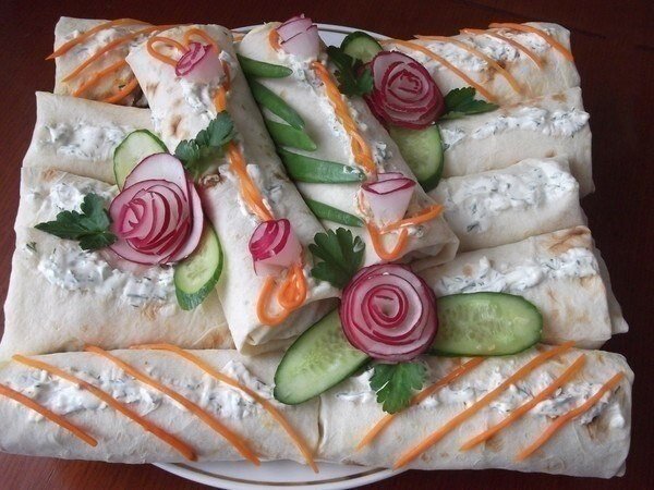 Лаваш разрезала пополам, чтобы можно завернуть овощи.