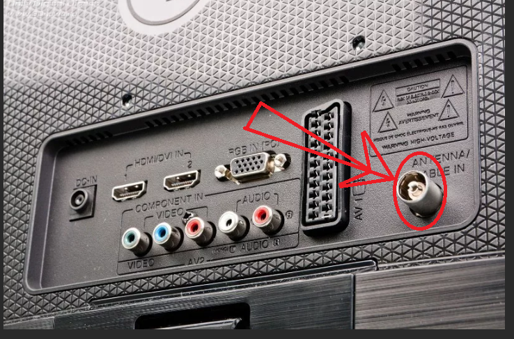 Всем привет, дорогие друзья! Многие у кого есть дома телевизор постоянно платят за него, например за тариф, чтобы было много каналов. Или например кто живет не в городе, то пользуются обычными антеннами, которые ловят ну уж очень мало каналов. Недавно я узнал способ, как на телевизоре настроить 500 каналов, и не платить за это никому. Сам бы я конечно до этого не додумался, мне помог мой знакомый, который работает в сервисном центре по ремонту телевизоров. Сломался телевизор Он мне частенько помогает делать какие-то вещи, то жене утюг от накипи почистит, то мне на телефоне дисплей поменяет. Вот недавно сломался телевизор, он приехал и починил мне его. Потом спросил сколько каналов у меня ловит, я ответил что всего 10 штук. На что он мне ответил, чтобы я вытащил кабель из своего телевизора и сунул его в помойку. Рассказываю У каждого телевизора есть разъем, обозначу его вам красным на картинке: В него вставляется антенна, она либо комнатная или уличная. Этот кабель надо вытащить и пос
