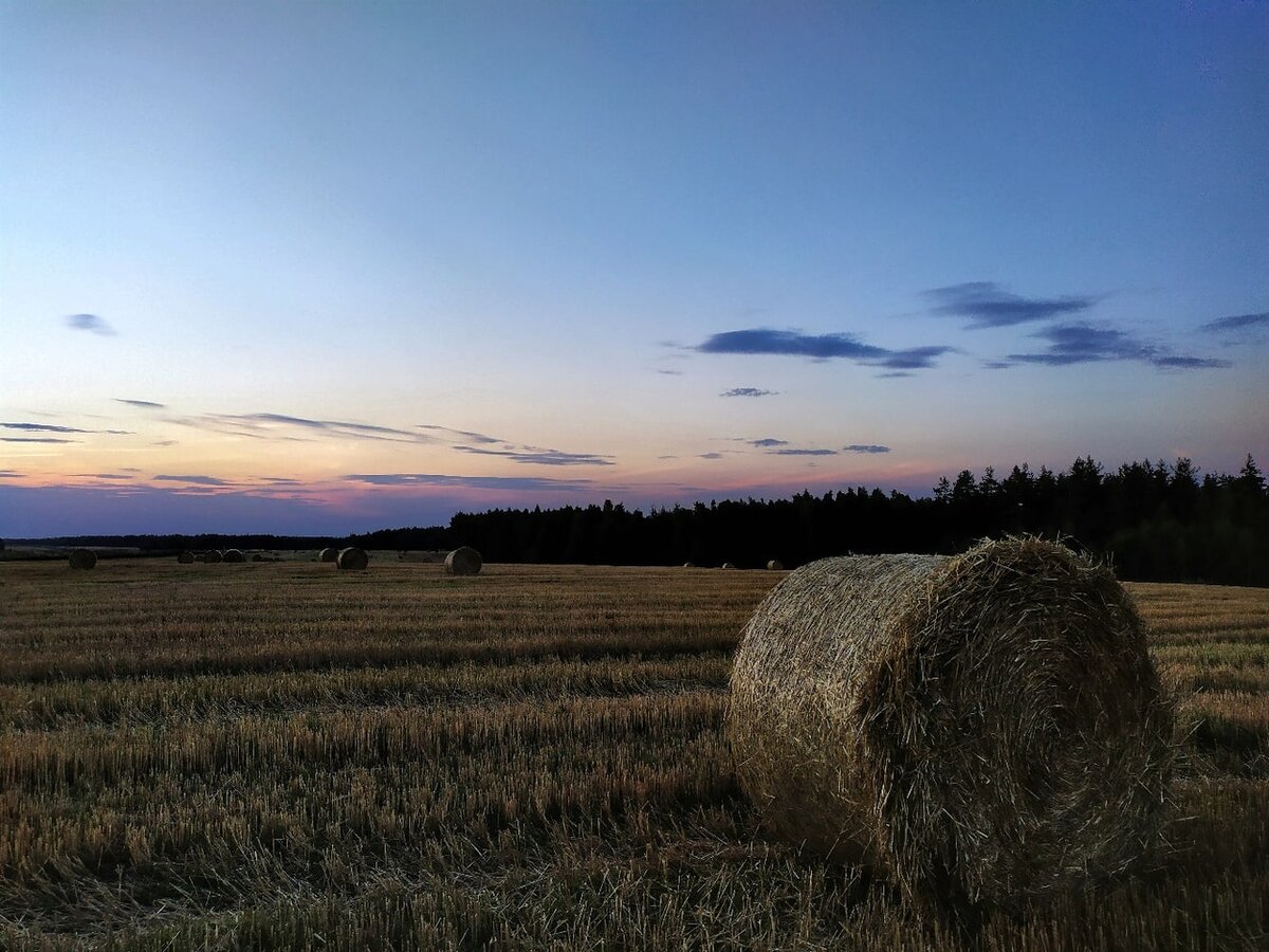 Укатившись в самый центр поля, нужно обязательно упасть наземь, развести руки в стороны и долго-долго лежать, глядя в голубое небо, и ни о чём не думать. А потом залезть на один из снопов, и свесив ноги, любоваться уходящим за горизонт насыщенно багряным солнцем. Я провалялся в этих полях точно не меньше часа, лежал и думал о том, что такие моменты - это одни из самых важных моментов в жизни, и на них не в коем случае нельзя жалеть времени, потому что оно замирает в эти мгновения, буквально останавливается, не идёт в зачёт, совесть молчит как никогда, а душа тает и медленно просачивается сквозь мягкое и расслабленное тело. Это один из немногих моментов, когда я, действительно, могу ни о чём не думать часами. Наверное, именно этим такие мгновения и дороги мне. И знаете, я только сегодня понял, что я помню не только каждый закат в своей жизни, но и каждое поле со стогами сена.