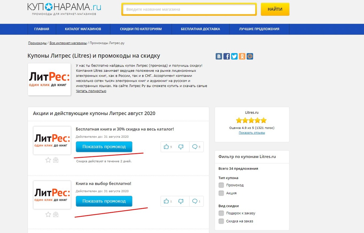 Для этой схемы нам понадобятся вот эти сайт Kuponarama и ВКонтакте. Зарабатывать мы будем на на промокодах Литрес. Многие из вас возможно замечали промокоды от Литрес, допустим со скидкой в 30%, на бесплатную книгу или на премиум аккаунт. Но никто не задумывался что на этом можно как то зарабатывать. Переходим на сайт Kuponarama и видим что здесь очень много промокодов на литрес, как со скидками так и на бесплатные книги: А кто-то эти книги покупает за довольно приличные деньги.После того как мы увидели что на сайте есть промокоды, заходим в Вконтакте и находим группы под названием: книги, литрес, промокоды, аудиокниги и т.д. После чего заходим на один из пабликов, видим что здесь хорошая активность и люди каждый раз что то комментируют, а значит они заинтересованные в этом, а это потенциальные клиенты: В комментариях не пишем, т.к могут выдать бан, пишем каждому в личное сообщение примерно такое сообщение "Привет, вижу ты любишь читать книги, и возможно даже покупаешь их? Могу скин