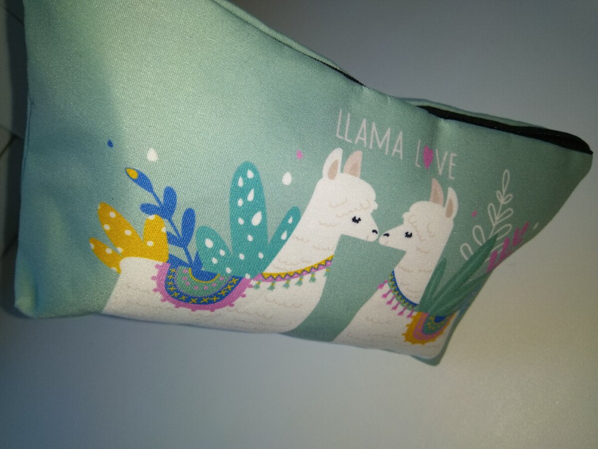 И ещё. Т.к. за цикл я не трачу целых две пачки, а в среднем по половинке из каждой, то остатки я храню в такой косметичке, купленной на Aliexpress из-за понравившегося принта с ламами. https://aliexpress.ru/item/32944564870.html