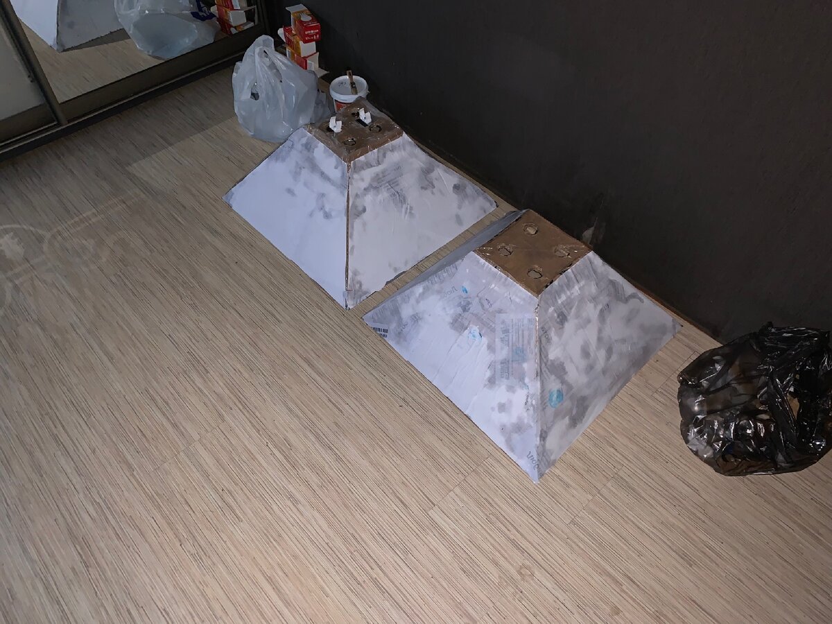 я начал со света так как покупать софт бокс очень дорого я решил сделать его сам я поехал в строительный магазин купил клей ПВА картон патроны для светильников фольгу скотч ну и так канцелярский нож потом я нашел в интернете все чертежи и и вырезал все по чертежу собрал и получилось вот так Потом я поехал в строительный магазин и купил баллоны с краской покрасил в чёрный цвет и купил черенок для лопаты черенок для лопаты служил опорой для светильника потом верхнюю часть я покрасил чёрный Краской потом в итоге я все собрал получилось примерно вот так Потом я начал думать о декорация я не мог решить что делать дальше либо натянуть ткань либо просто покрасить стену в белый цвет но потом я поехал в Леруа чтобы купить картон и наткнулся на красивые декорации мне она очень понравилась я решила сделать это у себя дома В первую очередь я постелил траву и прыгни прикрутил на стену траву там же в Леруа Мерлен Потом я купил там же в Леруа картон я сделаю из него декорацию чтобы закрыть шкаф и п