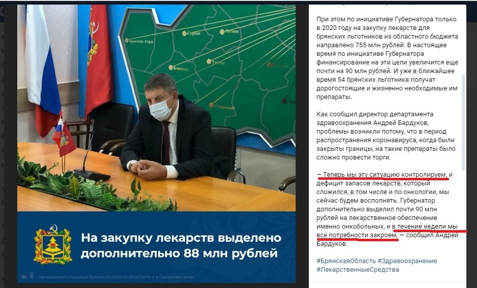 ЦИТАТА«Выделение денег на лекарства пациентам, которые имеют на них право по закону, не может и не должно зависеть от инициатив губернатора. Выходит, порядок в этом вопросе в области не налажен. Как и во всем – произвол» (комментарий читателя «БВ», пишущего под ником «yuri32»)
