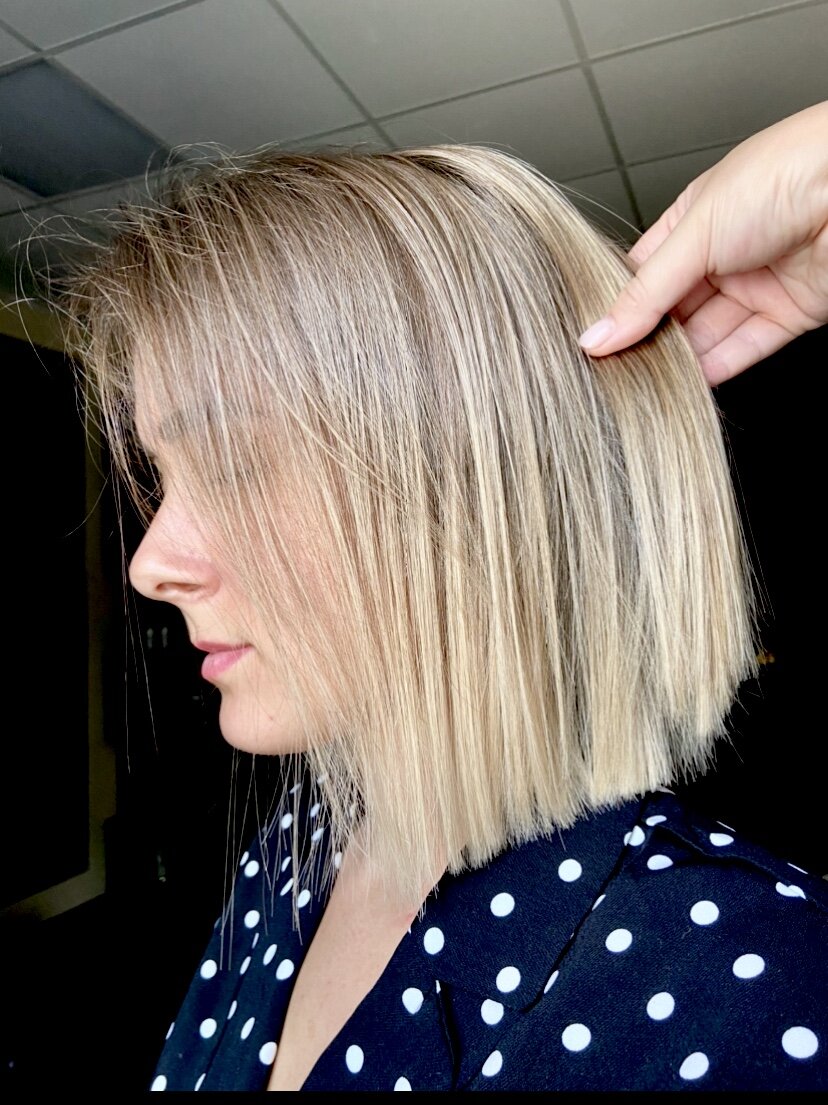 девушка живет в другом городе, поэтому задача была поставлена на рассыпчатый блонд, но чтобы на концах был прям светлый и главное- чтобы корни остались своего цвета + мягко отрастали.... вообще запрос был на airtouch в чистом виде😏