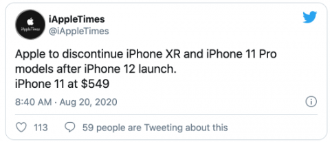 По данным инсайдеров, мероприятие станет не только дебютом четырёх новых гаджетов, но и финалом сразу нескольких предыдущих моделей, включая iPhone 11 Pro и Pro Max. По заявлению Twitter-аккаунта iAppleTimes, после анонса новой линейки с поддержкой сетей 5G компания прекратит продажи сразу нескольких моделей смартфонов. Ожидается, что с официального сайта Apple исчезнут iPhone 11 Pro, iPhone 11 Pro Max и iPhone Xr. Первые два устройства уступят место новинкам, а доступный Xr, по мнению информаторов, «уйдёт» из-за нежелания снижать его стоимость. В качестве альтернативы покупателям будет предлагаться iPhone SE (2020). При этом базовую версию iPhone 11 компания оставит в продаже по цене $549 — за те же деньги сейчас предлагается базовая версия iPhone Xr. Снизится ли розничная цена на остатки Pro-версий гаджетов прошлого поколения, источник не сообщает.