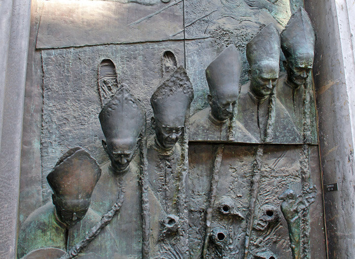 Самая жуткая дверь в мире находится в соборе Святого Николаса, этот собор находится в Словении. На самом деле все двери этого собора немного жутковатые, но данная - особенно. Она достаточно молодая, появилась эта дверь в 1996 году в честь визита в собор Папы Иоанна Павла Второго.