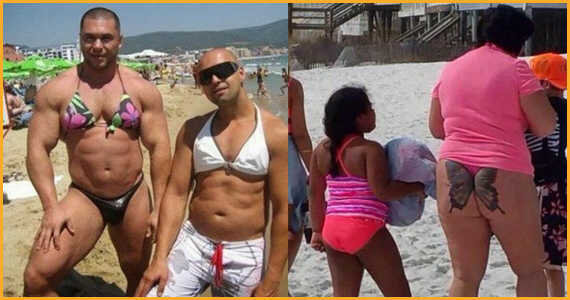 Хотите чтоб на пляже вокруг вас было как можно больше свободного пространства? Распугать загорающих совсем не сложно: просто оденьтесь подобно героям нашей сегодняшней летней подборки. То что вы сейчас увидите на фото, будет очень сложно забыть. Впрочем, пусть загорают в чем хотят, лишь бы это что-то не стало потом сниться в кошмарных снах!