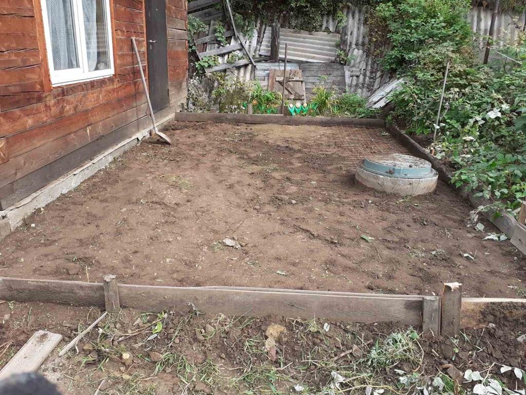 Предварительно выровняли основание, уложили арматуру и поставили опалубку.