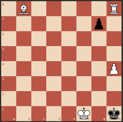 Предлагаю Вашему вниманию шахматную задачу. Автор К. Марков, 1970 год. Черный король находиться в углу на h1. Если бы белая ладья могла перепрыгнуть свою пешку, то был бы мат в 1 ход. Но в данной задаче ход белых, мат в 2 хода. Не каждый КМС быстро решит данную задачу.