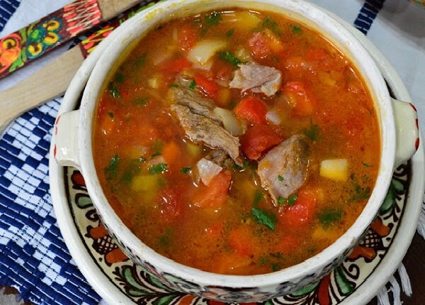 Для этого рецепта идеально подойдут томаты в собственном соку – заготовка на зиму, о которой я писала чуть ранее. Также для этого блюда, как для любого свиного супа, очень хороши свиные ребрышки.