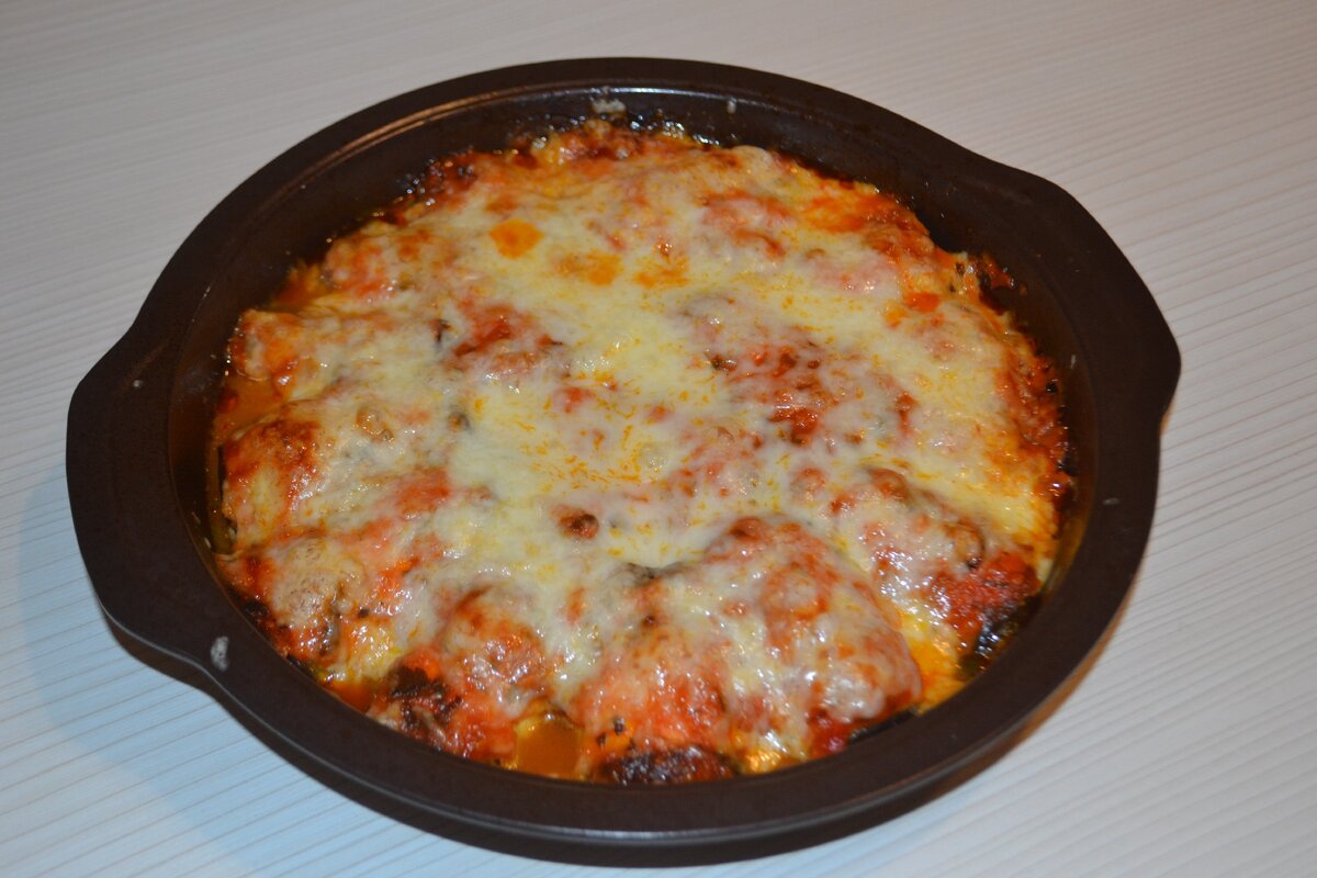 Сверху выливаем весь оставшийся томатный соус. Запекаем 25 минут при температуре 180 градусов.