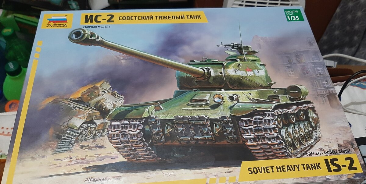Всем привет. По пути домой приобрел вот такую модель тяжёлого советского танка "ИС-2" фирмы "звезда". Это первая модель данной фирмы, которая попадет ко мне в коллекцию.