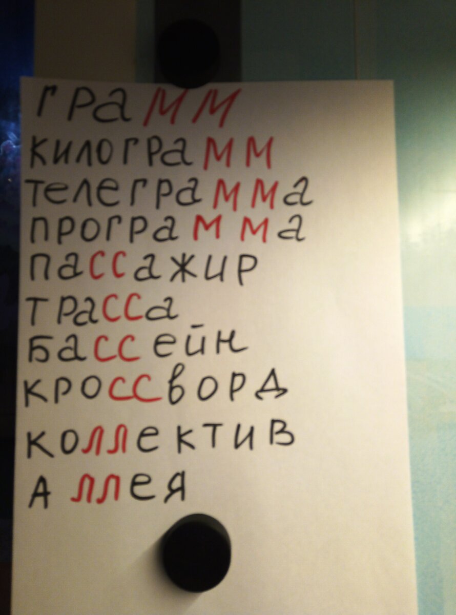 Запоминаем, общеупотребительные слова с удвоенными согласными.