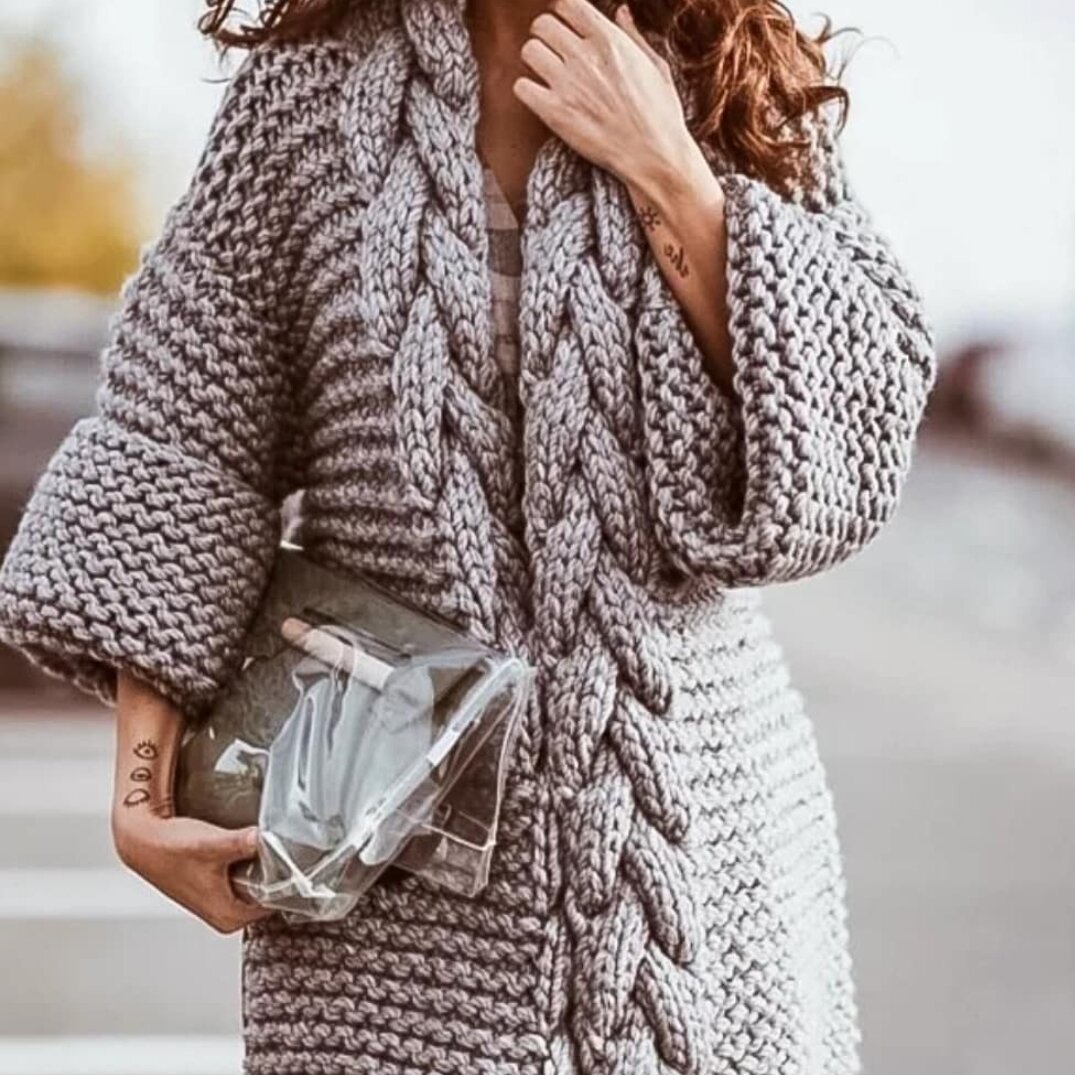 Друзья, всем добра!🙋♀️ Да, речь пойдёт именно о шикарных, респектабельных, зачастую с крупной вязкой кардиганах. Яркие фото из нистаграма, шикарные араны, качественная пряжа будоражат наши взгляды...... Уже через секунду мы решаем, что свяжем или закажем себе именно такой. И вот приходит очередной сезон, а мы выбираем себе стёганый синтепоновый жакет, и может быть, где-нибудь в аутлете🤷♀️. В чём дело..., проблема...? Может нехватка времени для выбора пряжи....., да нет..., в магазинах имеются готовые предложения, АлиЭкспресс так же работает. Возможно, виной сама вязаная фактура: вытягивается, скатывается, иногда неприятно покалывает......, требует ухода🙄. Ах, как всё же хотелось его хотя бы примерить, ну пусть, только на фотосессию. Это я пытаюсь читать ваши мысли. Всё же я попробую раскрыть этот секрет-несоответствие. И это, действительно - несоответствие. Несостыковка реалий. Большинство из нас не готовы воспринимать женщину, одетую в фактурное пальто из арановых кос, как обыд