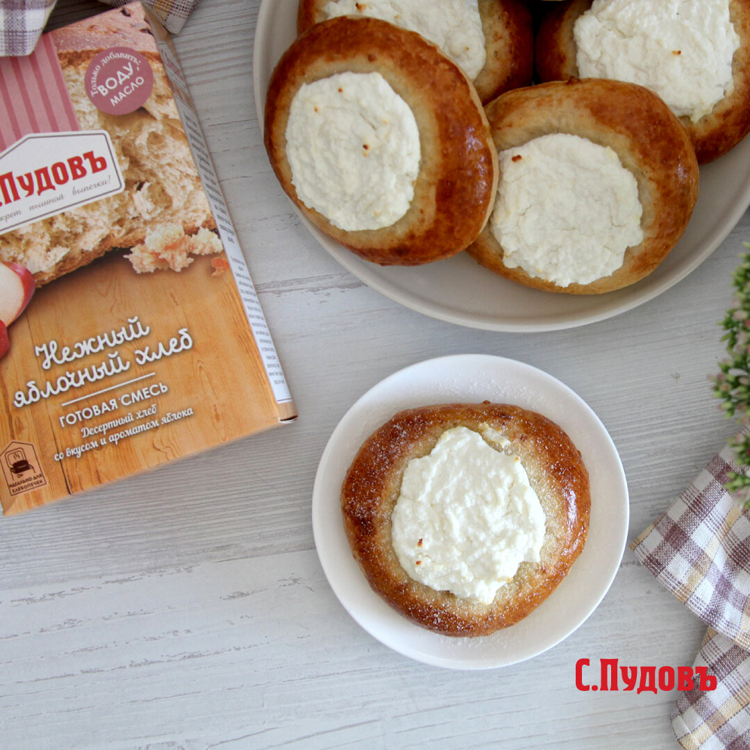 Совет: если хотите испечь побыстрее, приготовьте тесто из смеси «Нежный яблочный хлеб» С.Пудовъ.Еще наши фирменные рецепты: «Ватрушки с джемом из дрожжевого теста от С.Пудовъ», «Сочники от С.Пудовъ».
