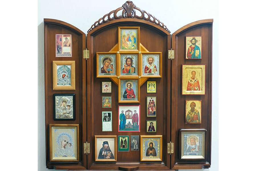 - Принципе церковной иерархии: местночтимые иконы нельзя располагать над главными (Христа-Спасителя, Девы Марии и Святой Троицы).