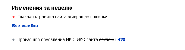 Если Вы добавили свой сайт в панель вебмастера Яндекс, то поисковик будет регулярно присылать информацию о ключевых показателях эффективности, изменениях в работе ресурса и наличии проблем. Данная сводка поможет оперативно обнаружить и исправить недочеты, улучшить «слабые» или понизившиеся показатели.
